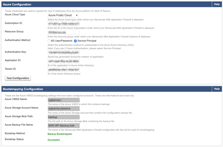 The WAF is fronted by an Azure Load Balancer (ALB – Basic SKU) which is configured by the WAF itself, hence the Azure configuration mentioned above. As the Barracuda Cluster increases nodes, as a result of the VMSS scaling-out, the WAF updates the ALB with appropriate NAT settings, etc. However, you should review this configuration within the template prior to the initial deployment.