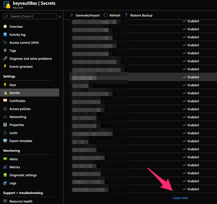 You may have spent some time scrolling through the Secrets section of Azure KeyVault. A few clicks on Load More later and you eventually find the secret you have been looking for: