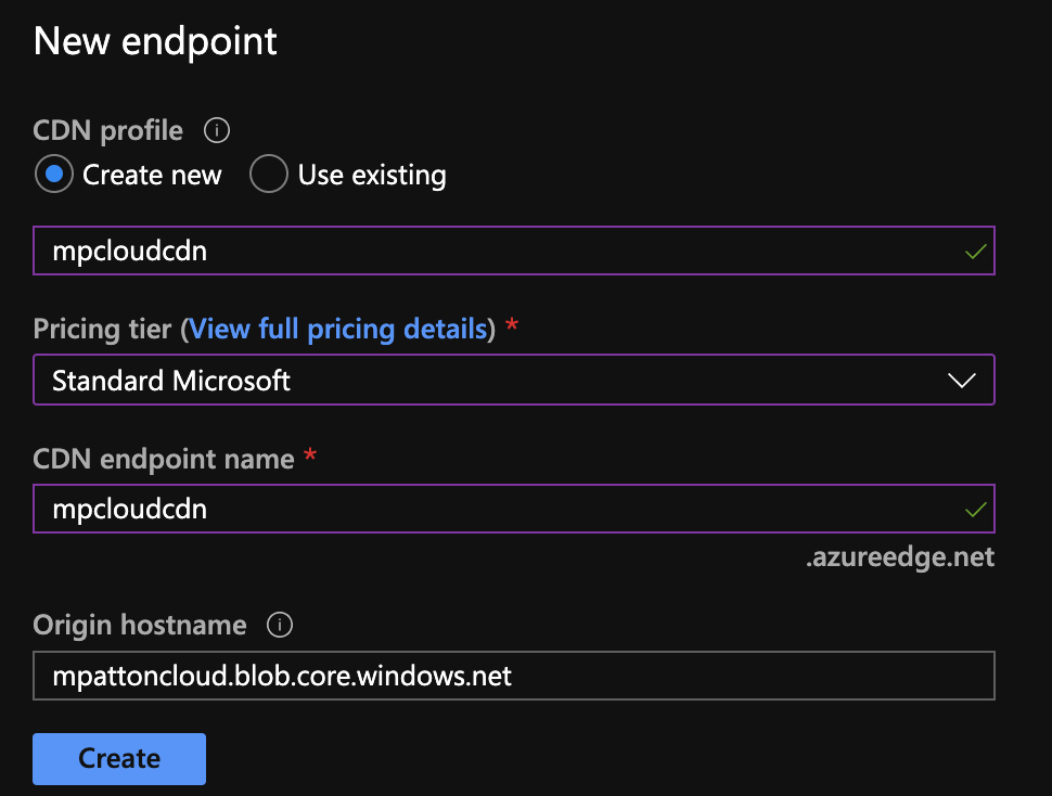For this example, i’m going to create a CDN Standard from Microsoft: