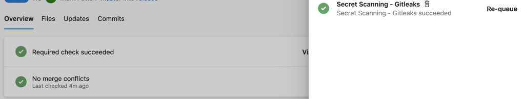 This is a pre-merge check which will allow the approval and completion, or prevent such, depending on the result of the gitleaks pipeline. When the PR is created, gitleaks is automatically run.