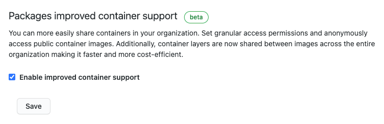 In order to publish container images to the registry, the feature for managing containers must be enabled in the GitHub organisation.