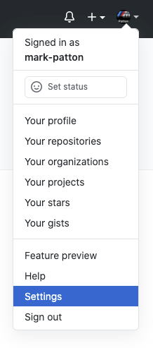 - On GitHub.com, expand your profile menu and choose Settings